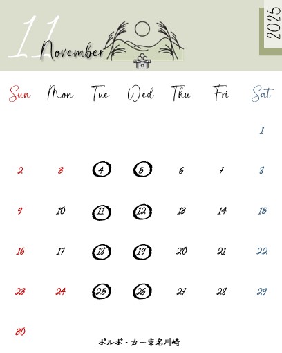 11月営業日カレンダーです🍁 ○が店休日となります。