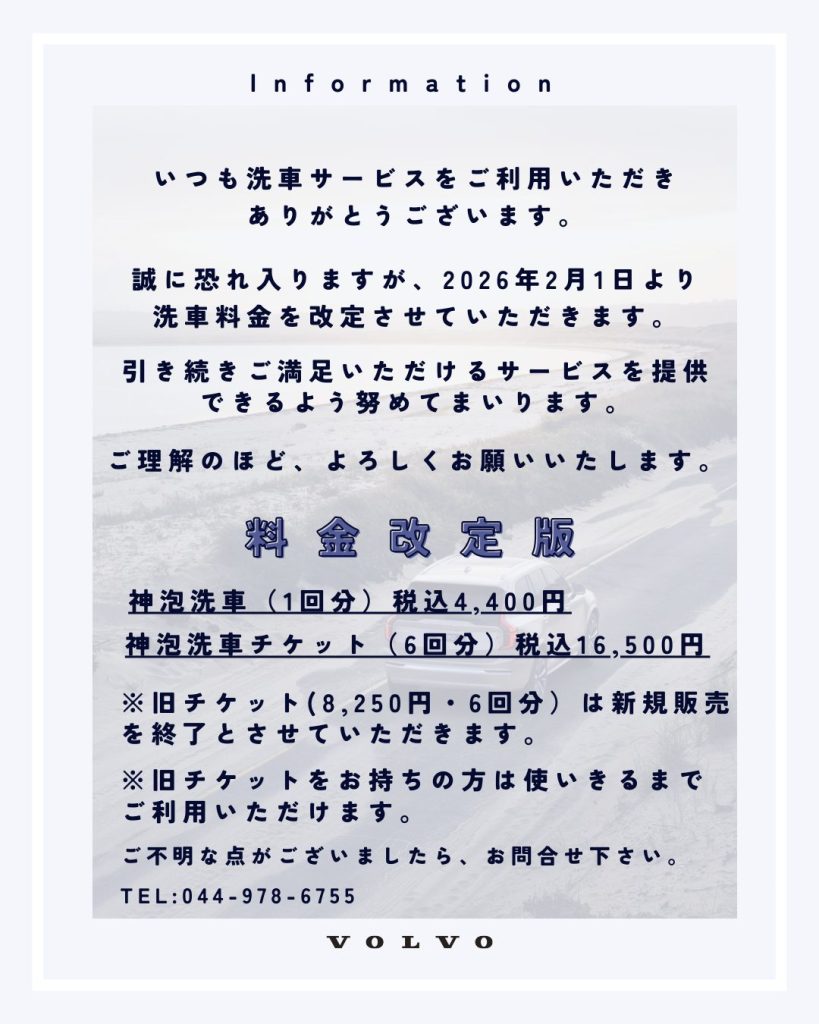 【洗車料金改定のお知らせ】
